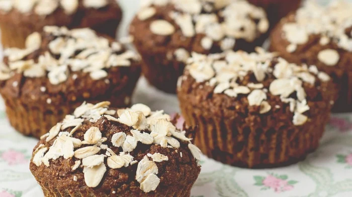 Magdalenas de chocolate con avena, plátano y miel: una receta de repostería saludable